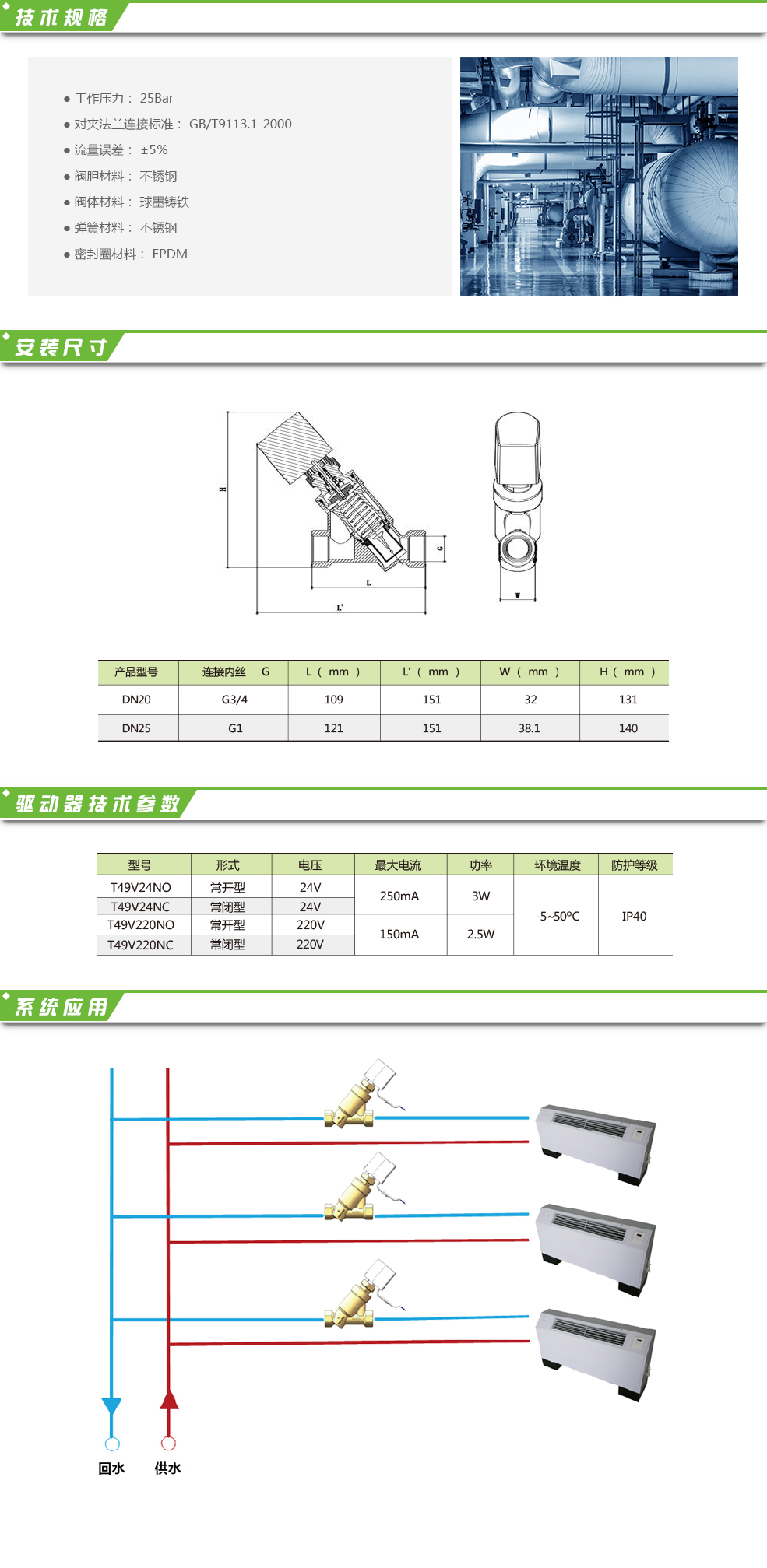 本系列產(chǎn)品主要用于解決暖通空調(diào)系統(tǒng)中的水力失調(diào)問題,是集動態(tài)平衡和電動二通與一體的產(chǎn)品,特點(diǎn)是抗干擾能力強(qiáng),控制精度高,在系統(tǒng)負(fù)荷波動較大的變流量系統(tǒng)中優(yōu)勢明顯。根據(jù)設(shè)備的輸入信號對電熱式開關(guān)驅(qū)動器進(jìn)行動作,實(shí)現(xiàn)閥門的開關(guān)功能。主要適用于暖通空調(diào)系統(tǒng)末端空調(diào)設(shè)備,可對各環(huán)路的流量、溫度進(jìn)行自動控制,實(shí)現(xiàn)合理利用能源。