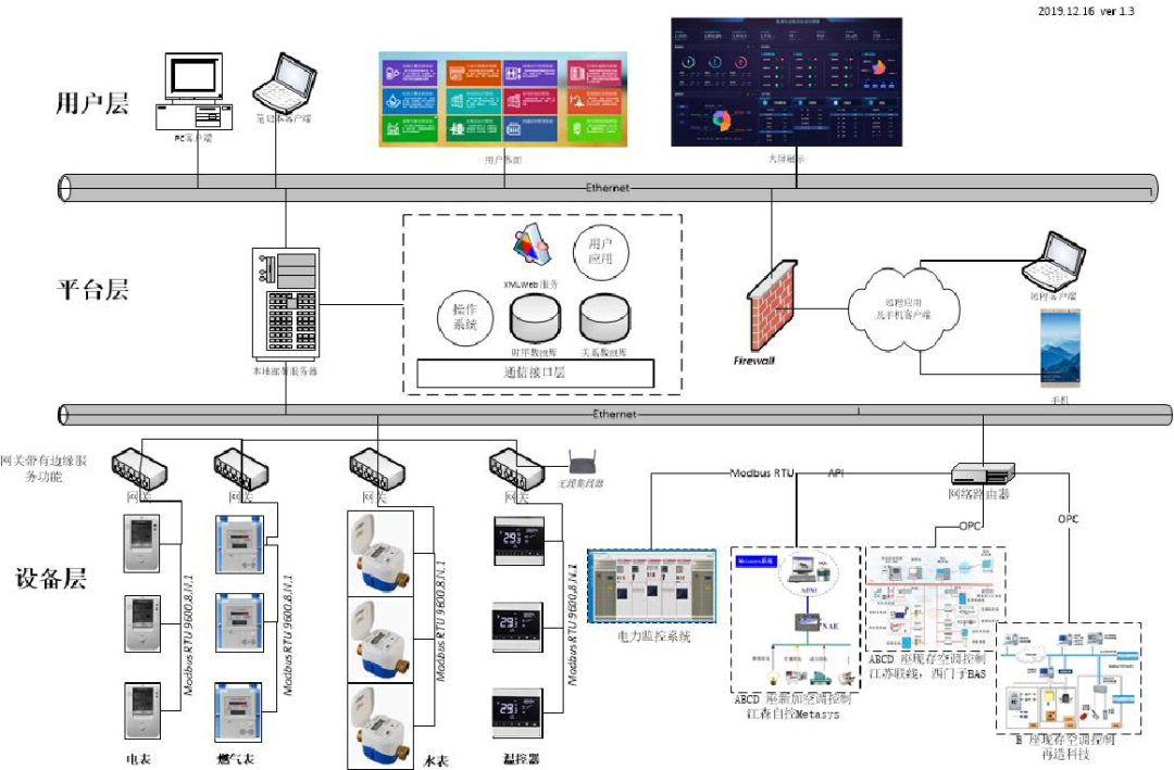 其數(shù)據(jù)來源可以是各類智能設(shè)備和數(shù)據(jù)采集器直接獲取的實時數(shù)據(jù),或是其它第三方計量采集系統(tǒng)的數(shù)據(jù)庫,也可以通過Modbus通信、BACnet通信、OPC等方式與支持對應協(xié)議的計量采集設(shè)備、計量采集系統(tǒng)實時通訊,自行存儲數(shù)據(jù)。