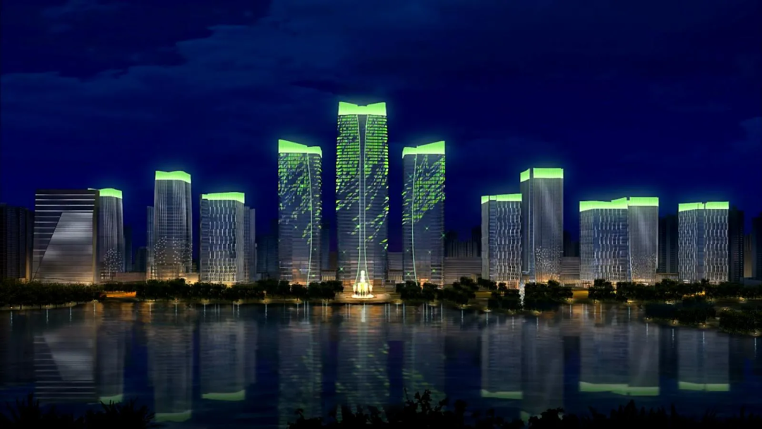 項目總投資150億元、建筑面積150萬平方米,分中央商務區、住宅區、中心商業區三大功能板塊。其中 A組團(中地塊)內建筑由超高層雙子地標塔樓組成,業態涵蓋國際酒店、潮流商業、商務辦公等。