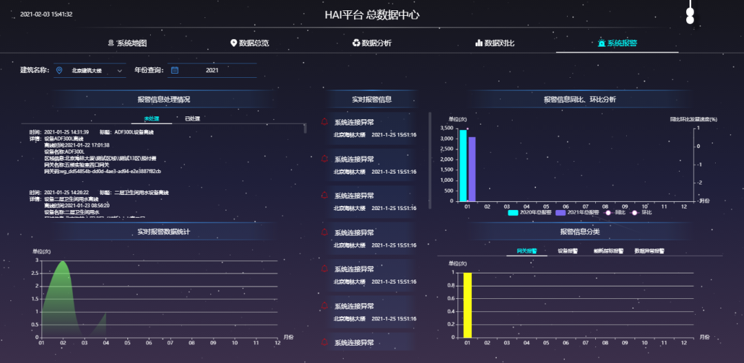 系統(tǒng)能夠基于AIoT技術(shù)的知識(shí)庫(kù)自動(dòng)識(shí)別能源管理機(jī)會(huì),指導(dǎo)運(yùn)行管理,實(shí)現(xiàn)對(duì)校園內(nèi)能耗設(shè)備的最優(yōu)化利用;能夠?qū)赡艹霈F(xiàn)的異常情況進(jìn)行提前預(yù)警提示,將故障報(bào)警信息及時(shí)的發(fā)送給相應(yīng)的管理人員,第一時(shí)間解決故障問題;