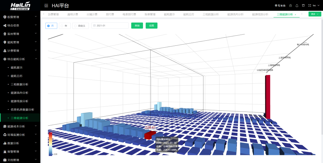 海林能源樓控系統(tǒng)選用采用一體化設(shè)計(jì)的海平臺(tái),具有標(biāo)準(zhǔn)化的數(shù)據(jù)互通共享,可以在監(jiān)管層的頂層形成信息閉環(huán),既能實(shí)現(xiàn)邏輯策略的聯(lián)動(dòng)控制,同時(shí)也為AI算法優(yōu)化控制提供數(shù)據(jù)支持。從而使能源管理統(tǒng)計(jì)分析的結(jié)果,不僅用于各種方式的輸出展現(xiàn),并且為樓控系統(tǒng)的優(yōu)化控制提供支持,形成能源管理與樓宇自控的閉環(huán)。
