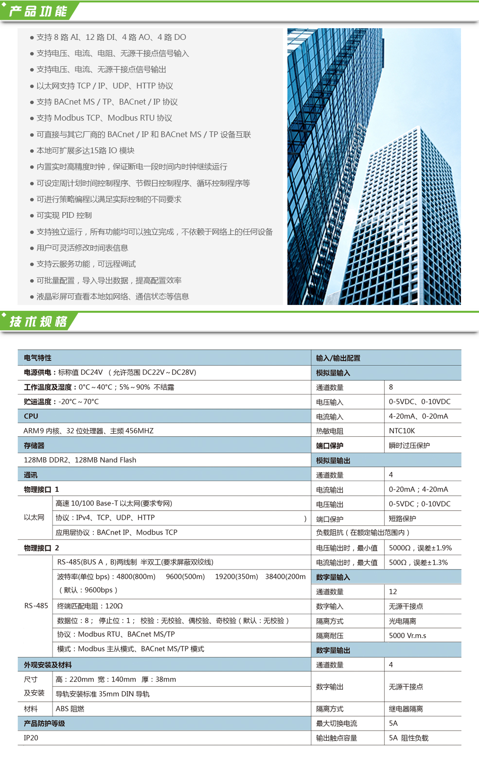 HL-D01 樓宇控制器是一款支持多種協議、帶有輸入輸出接口的智能可編程控制器,主要用于建筑內暖通空調等設備的控制,TFT2.8寸液晶彩屏,支持使用BACnet、Modbus通訊協議及云服務,可實現遠程配置與監控,USB 接口,方便系統升級與維護。每個樓宇控制器即可獨立工作,又可與其他控制器聯網使用,還可連接 I/O 擴展模塊。另外,該樓宇控制器也可連接組態屏(HMI)實現人機交互管 ...