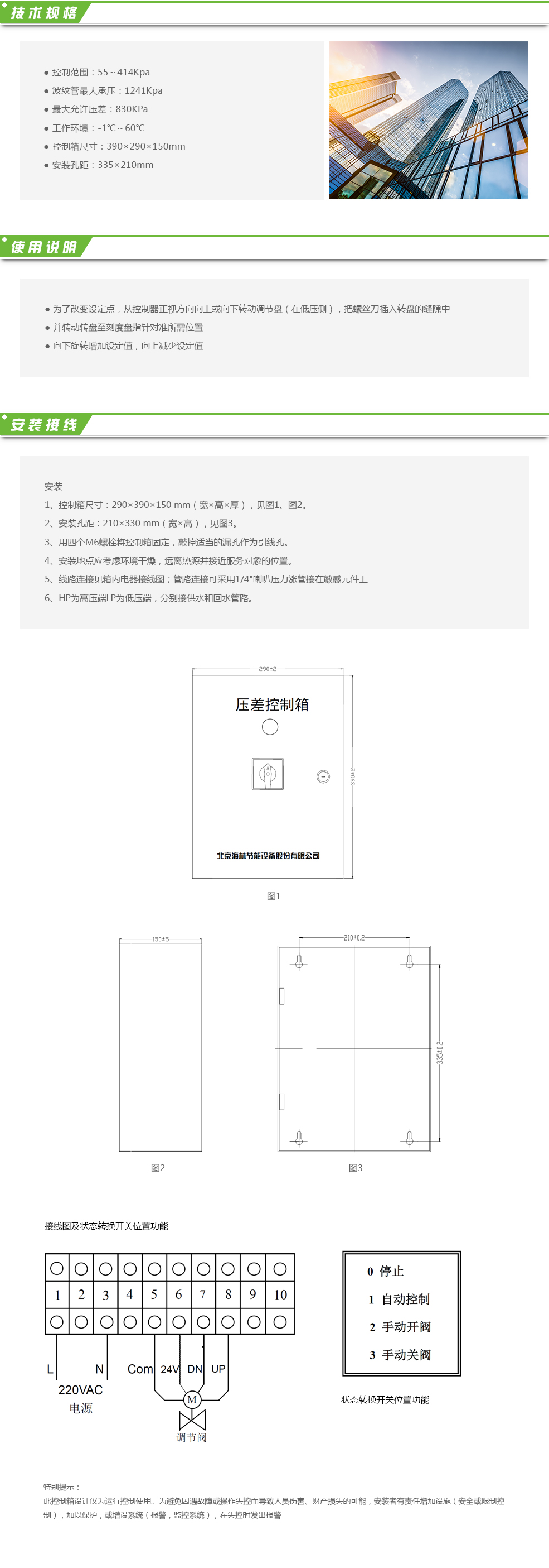 HL-KZ1301G壓差控制箱內(nèi)配裝海林HL-PD01型壓差控制器,用于水或氣系統(tǒng)的壓差旁路控制。通過檢測供水系統(tǒng)和回水系統(tǒng)的壓力差,與箱內(nèi)壓差控制器上用戶設(shè)定值相比較,并通過判斷來控制電動調(diào)節(jié)閥,達到調(diào)節(jié)水系統(tǒng)的旁通流量,保持水系統(tǒng)壓力平衡。一種典型的應(yīng)用是,把調(diào)節(jié)閥安裝在系統(tǒng)水泵附近的旁通管路中。當(dāng)系統(tǒng)壓差增大而超過控制器設(shè)定值時,閥門則進而開大。更多的水流經(jīng) ...